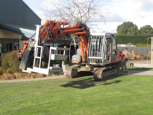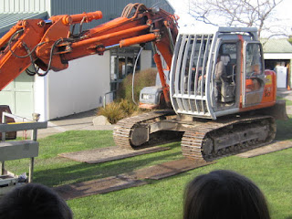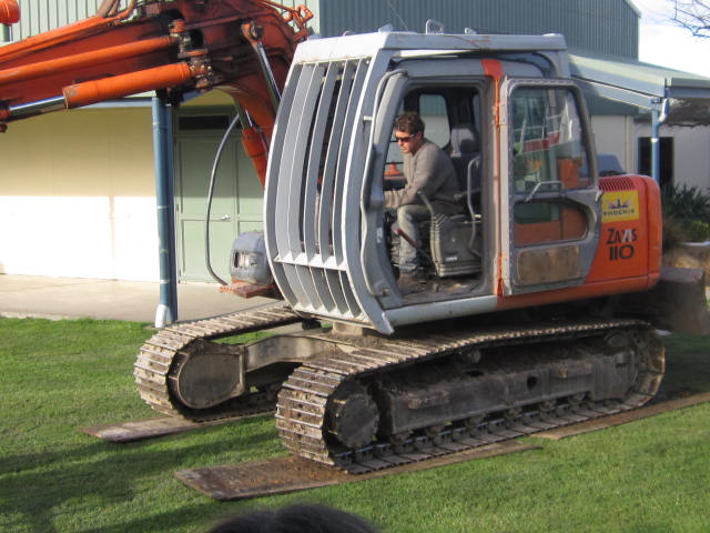 We had a digger at school today (26 June). We watched how the digger men tried to protect the Clive School lawn by driving over boards rather than the lawn. Here are a few photos.
