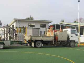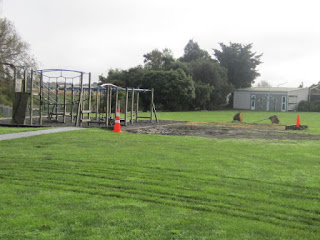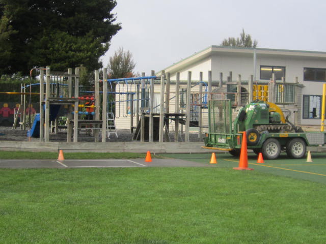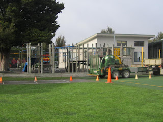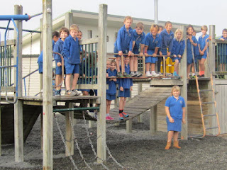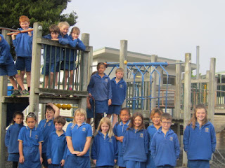 Today (2 June) the men came to take down the junior playground. They are moving it over by the senior playground. The reason for this move is because a new class room is being built by Room 3. We went to the junior playground for the last time! We stood were it will be...