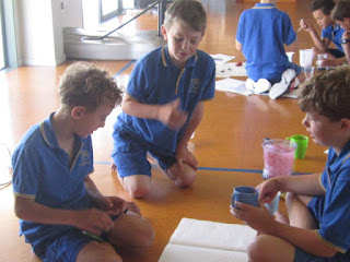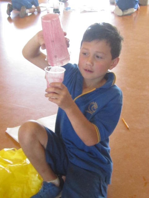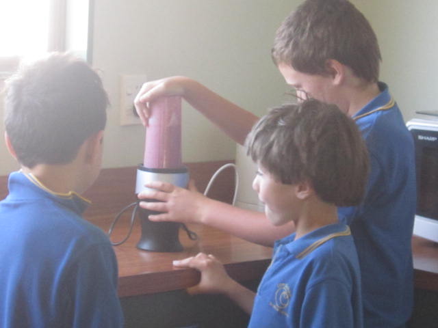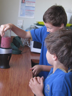 Today we researched about ingredient combinations. We wanted to know which combinations would make a yummy, healthy smoothie. We rated each smoothie giving them points for taste, texture and colour. The BEST smoothie is the one we will market and produce on Market day. Here's our research! (THANK YOU PARENTS for the loan of the blenders.)
